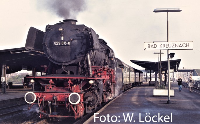 BR 023 011-0 steht im Bahnhof Bad Kreuznach...