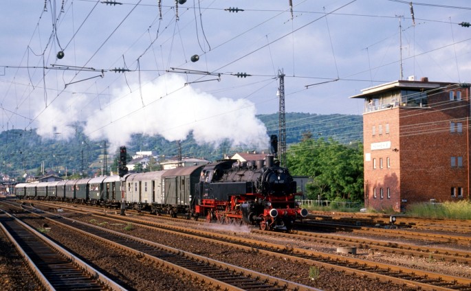 Die DB-Museumsdampflok BR 86 457 weilte im Juni 1989 in Weinheim und befuhr unter anderem die Strecke nach Viernheim.